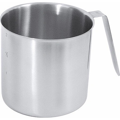 Odměrka vyrobená z nerezové oceli s vnitřním i vnějším cejchem každých 0,5 l.