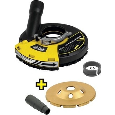 Fartools odsávací kryt pro úhlové brusky na broušení betonu o průměru 180 mm Včetně kotouče. Vymezovacích kroužků a adaptéru na odsávání. Výsuvný přední kryt pro pohodlné...
