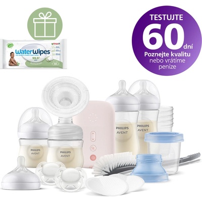 Obsah: - Manuální odsávačka s krytem hrdla - 3x VIA pohárek (180 ml) + víčko - Extra měkký novorozenecký dudlík Natural - Těsnící víčko Inspirováno miminkem, praktické pro...
