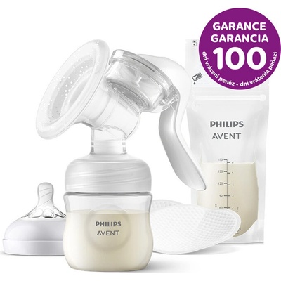 Obsah: - Manuální odsávačka s krytem hrdla - 3x VIA pohárek (180 ml) + víčko - Extra měkký novorozenecký dudlík Natural - Těsnící víčko Inspirováno miminkem, praktické pro...