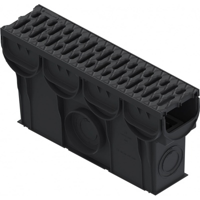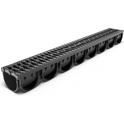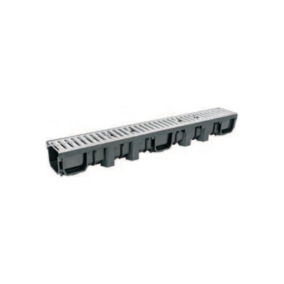 Odvodňovací žlab s plastovou mříží , pochůzný A15 ( 1,5 t ) , délka 1 m . Výška 105 mm , šířka 130 mm .Možnost spodního vývodu na 3 místech