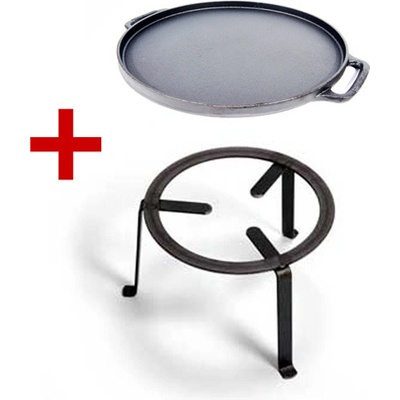Grilovací plotna 43 cm oboustranná + 40 cm stojan do ohniště, SET Vaello Campos la Valenciana Popis: Praktická a snadno přenosná grilovací sestava kvalitní litinové grilovací...