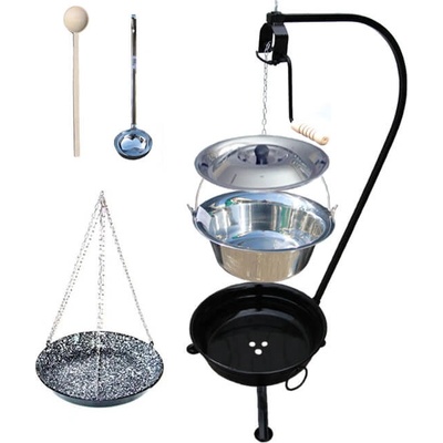 Kotlíková souprava obsahuje: Smaltovaný kotlík 20 L. Smaltovaná poklice. Stojan s pojistný kladkou, délka 1,25 m. Přenosné ohniště na oheň, průměr: 36 cm. Nerezová naběračka,...