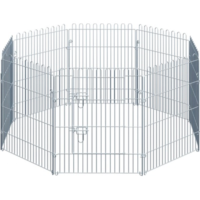 Ohrádka Aksinja, Šedá Kovová ohrádka pro domácí mazlíčky, psí klícka, osm panelů, skládací a přenosná, 77 x 60 cm, šedá. JEMNÉ ZPRACOVÁNÍ: Zaoblené rohy a hrany zabrání...