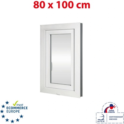 Skladem – jednokřídlé otevíravé i sklopné plastové okno v rozměru 80x100 cm + 3 cm podkladní parapetní lišta se dá otevřít i sklopit, má polohu mikroventilace a panty na levé...