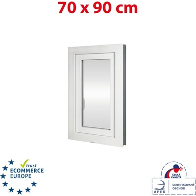 Skladem – jednokřídlé otevíravé i sklopné plastové okno v rozměru 90x90 cm + 3 cm podkladní parapetní lišta se dá otevřít i sklopit, má polohu mikroventilace a panty na pravé...