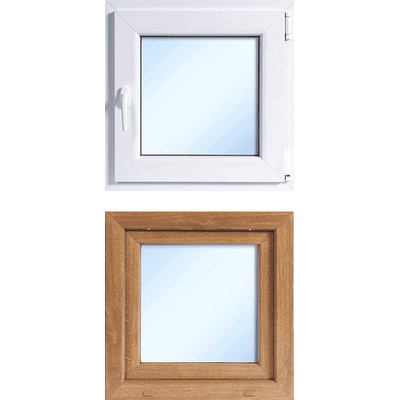 Skladem – dvoukřídlé plastové okno Otevíravé + Otevíravé i sklopné v rozměru 120x120 cm + 3 cm podkladní parapetní lišta je bez sloupku (Stulp) a křídlo s klikou je na pravé...