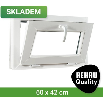 Moderní a elegantní okno v rozměru 600x480 mm z kvalitního německého pětikomorového profilového systému Trocal zasklená izolačním dvojsklem Pilkington s meziskelním rámečkem a...
