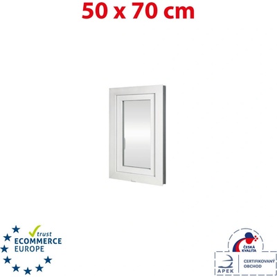 Moderní a elegantní okno v rozměru 1500x1000 mm z kvalitního německého pětikomorového profilového systému Trocal zasklená izolačním dvojsklem Pilkington s meziskelním rámečkem a...