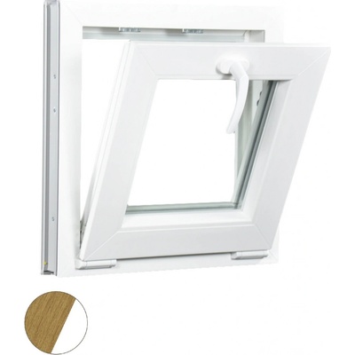 Skladem – jednokřídlé sklopné plastové okno v rozměru 50x60 cm + 3 cm podkladní parapetní lišta se dá sklopit a je v dekoru zlatý dub / bílá. Jednoduchý nadčasový design s lehce...
