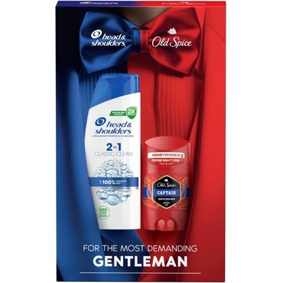 Dárková sada Head & Shoulders šampon 330 ml + Old Spice deostick Captain 50 ml Pánská dárková kazeta obsahuje šampon Head & Shoulders 330 ml Old Spice. Šampon na vlasy proti lupům. Už žádné lupy, jen krásné vlasy bez lupů. Důkladně čistí. Posiluje vlasovou strukturu....