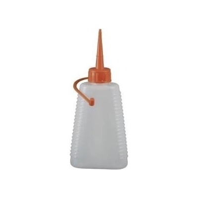 Transparentní olejnička bez pumpičky s objemem 100 ml a plastovou hubičkou s uzávěrem z odolného polyethylenu (LDPE) pro oleje, kyseliny a chemikálie. - velmi univerzální...