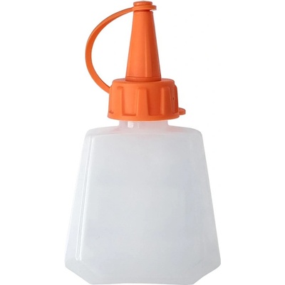 Transparentní olejnička bez pumpičky s objemem 50 ml a plastovou hubičkou s uzávěrem z odolného polyethylenu (LDPE) pro oleje, kyseliny a chemikálie. - velmi univerzální...
