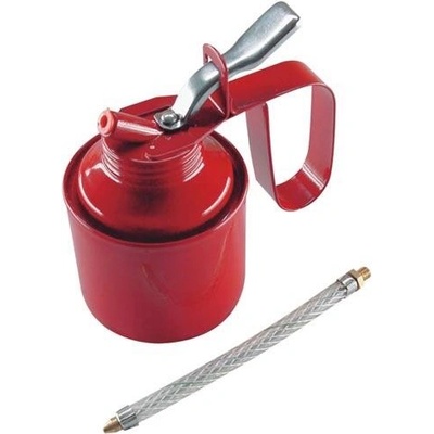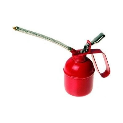Bytelná kovová olejnice s odšroubovatelnou pružnou vyztuženou hubicí pro dávkování oleje i v obtížně přístupných místech. Kvalitní povrchová úprava, červená barva. Objem: 500...