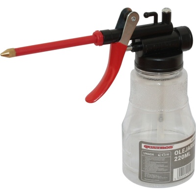 Olejnička s pumpičkou, 220 ml, 8 cm hubice, manuální, průhledná, plastová – QUATROS QS18022 Malá ruční maznička je ideální k dávkování oleje nebo i jiných maziv v těžko...