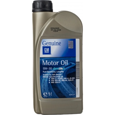 Motorový olej GM Opel Genuine DEXOS2 5W-30 1L Splňuje specifikace: - ACEA C3 - API SN/CF - GM-LL-A-025 - VW 502.00, 505.00, 505.01 - MB 229.51/ 229.52 Motorový olej GM/Opel 5W-30 Dexos 2 kombinuje potřeby benzínových a naftových motorů v jedné specifikaci a je...