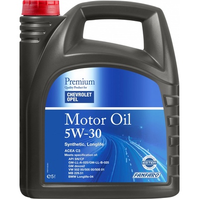 olej motorový, syntetický, balení 5 litrů, specifikace: SAE 5W-30, ACEA C3, API SN/CF, Dexos2™, GM-LL-A-025/ GM-LL-B-025, BMW LL-04, VW 502 00/ 505 00/ 505 01, MB 229.51