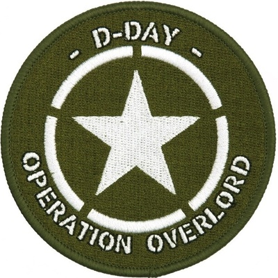 Klasická kulatá nášivka připomínající operaci Overlord, která je všeobecně známá jako Den D. Uprostřed nášivky Spojenecká hvězda, na okrají nápis D-Day a Operation Overlord