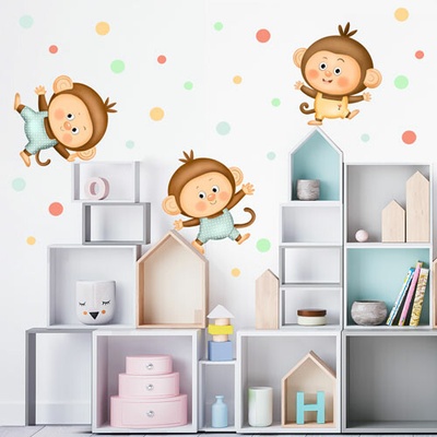 Veselé opice s puntíky - nálepky na zeď ✅ Expresní dodání do 24 hodin ✅ Doručení kurýrem ZDARMA