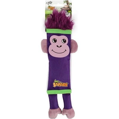 Pískací hračka pro psy, vyrobena z odolného materiálu požární hadice. Bez výplně, s plyšovými nohami a jemnými vlásky. Velikost 35 cm. Fialová opička z řady odolných hraček...
