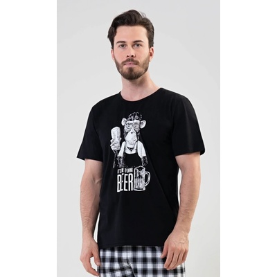 Pánské bavlněné pyžamo šortky Opice. Pánské pyžamo se skládá z trička s krátkým rukávem a krátkých šortkových kalhot. Na tričku je velký obrázek opice s pivem. Výrazné tričko...