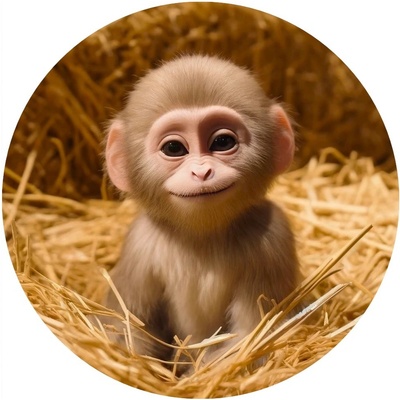 Dokonalá pomůcka pro rychlé zdobení dortů. Tenká oplatka na dort s motivem opičky sedící v seně je určena k ozdobení dortů. Průměr obrázku: 20 cm (obrázek je nutné...