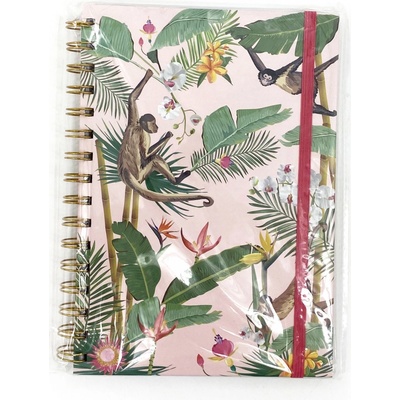 Dívčí linkovaný notes A5 se spirálovou vazbou Pevné desky s gumičkou a tropickým motivem.