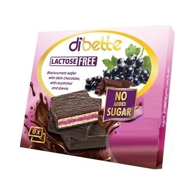 Diabette oplatky plněné krémem z černého rybízu v lahodné polevě z hořké čokolády. Bez laktózy. Bez přidaného cukru. Slazená erythritolom a Stevieho. Obsahuje přirozeně se...