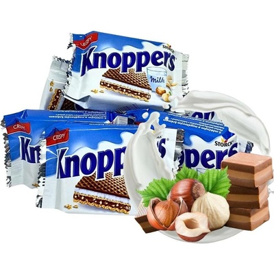Knoppers Oplatka s mléčným a lískooříškovým krémem 8×25 g, 200 g – Křupavá svačinka plná chuti a energie Knoppers Oplatka s mléčným a lískooříškovým krémem 8×25 g, 200 g je...