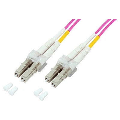 Duplexní optický kabel OM4 s konektory LC.; Konektory: 2x LC(M) - 2x LC(M); Kabel: 2 spojené kabely s vícevidovým skleněným vláknem (průměr vlákna 50µm, průměr obalu vlákna...