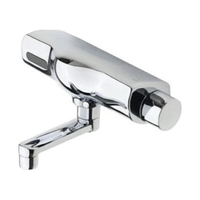 Bezdotyková nástěnná umyvadlová baterie s otočným výtokovým ramenem. Perlátor s omezovačem průtoku (6 l/min). Otočný knoflík pro nastavení teploty vody je vybaven bezpečnostním...