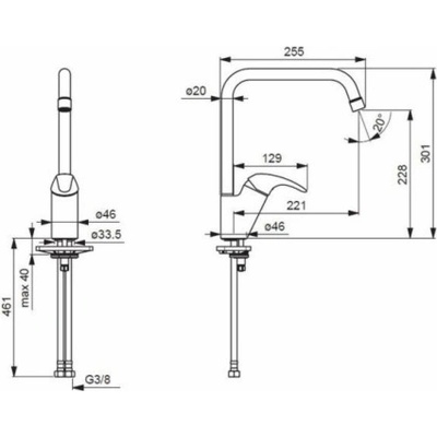 Oras. Model- 1438F. Délka - 25,5 cm. Šířka - 4,6 cm. Hmotnost - 1,61 kg. Výška - 30,1 cm. Barva - chrom. Materiál - mosaz. Konektor - 3/8 palce. Kazeta/mixovací systém (kartuše)...