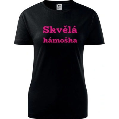 Černé dámské tričko Skvělá kámoška. nabízené velikosti jsou S,M,L,XL,XXL. Tričko je zařazeno v sekcích Dárek pro kamarádku, Dárek pro kolegyni, Dárek k 15 narozeninám pro holku,...