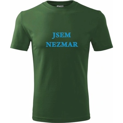 Lahvově zelené tričko jsem Nezmar. nabízené velikosti jsou S,M,L,XL,XXL,XXXL. Tričko je zařazeno v sekcích Vtipná pánská trička, Dárek pro muže k 50, Dárek pro muže k 40, ....