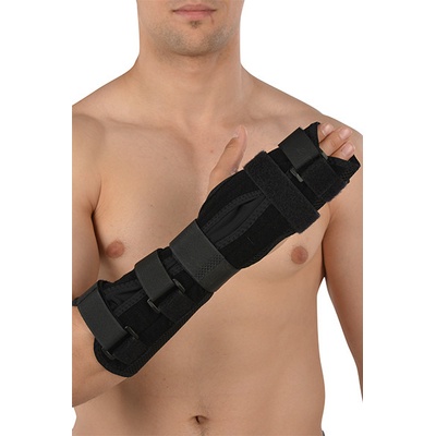 Anatomicky tvarovaná fixační ortéza zápěstí s oporou pod prsty a se samostatnou dlahou pro palec. - Lehká otevřená konstrukce ortézy - Fixace za pomoci širokých pásků na...