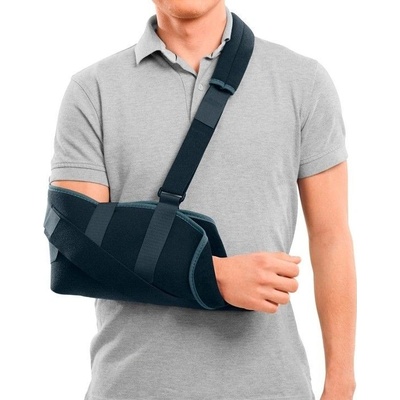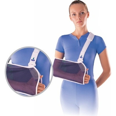 Jedná se o jednodílný ramenní závěs vyráběný ze třívrstvé textilie. Principem tohoto typu ortézy je fixace předloktí v zavěšené „tašce”, která je vypolstrovaným popruhem...