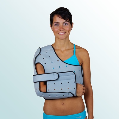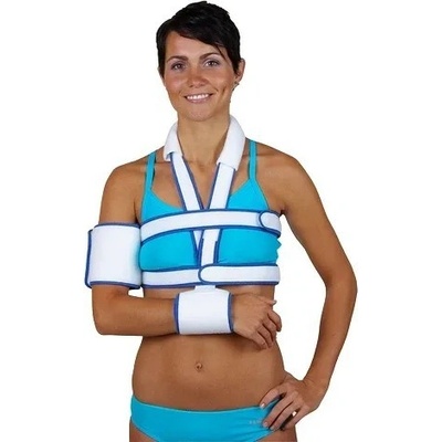 Ortéza k fixaci ramenního kloubu, vzdušná a lehká, s jednoduchou aplikací. Způsob zavěšení paže zajišťuje větší odlehčení ramenního kloubu a dobrý přístup k event. kožním ranám...