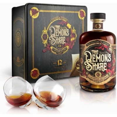 Dárkové balení rumu Demons Share 12Y 0,7 L + 2x sklo Určitě znáte výraz andělská daň, kdy vyprchává/odpařuje se alkohol ze sudu při zrání. Rum je pojmenován Demons Share,...