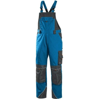 Pánské kalhoty s náprsenkou, zdvojená kolena, náprsní kapsa na zip, boční kapsa na metr, pas v zádní části do gumy.. Barva modrá. Materiál: 100% bavlna, gramáž 240g/m2. Norma...