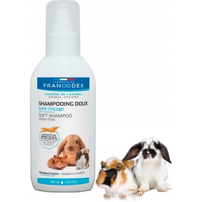 Francodex Šampon bezoplachový hlodavci 100ml Bezoplachový šampon poskytne hlodavcům perfektní hygienu, zdraví a příjemný pocit pohody. Šampon má neutrální pH, obsahuje...