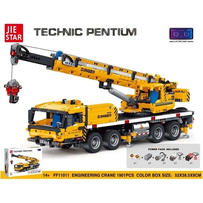Sada 1901 stavebních bloků pro svépomocnou montáž dálkově ovládaného stavebního vozidla jeřábu. Jeřáb má mnoho pohyblivých částí, například kabinu otočnou o 360 stupňů. Kromě...