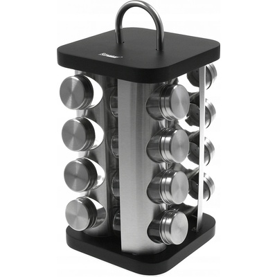 Stojan na koření EDENBERG EB-4025, 16-ti dílný Funkce, vlastnosti a další informace Materiál: nerezová ocel Skleněné nádoby Sada obsahuje 16 nádob na koření Otočný stojan...