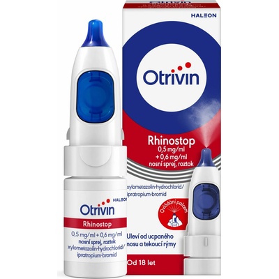 Otrivin RHINOSTOP 0,5 mg/ml+0,6 mg/ml nosní sprej, roztokOtrivin Rhinostop je jediný přípravek svého druhu na trhu s unikátním mechanismem účinku. Uvolní dýchaní nosem a zastaví tekoucí rýmu.Složený léčivý přípravek obsahující dvě různé látky. Jedna z těchto léčivých...