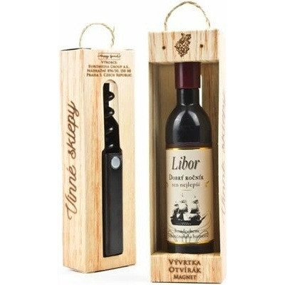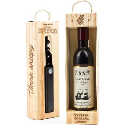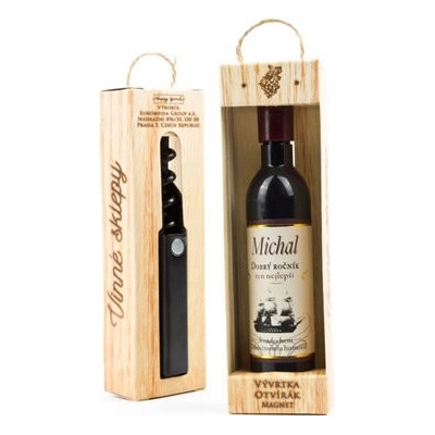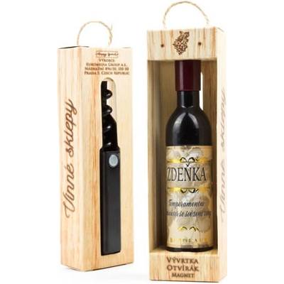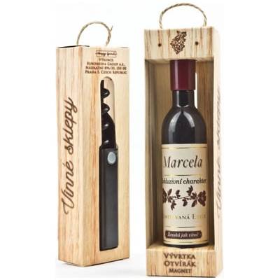 Vývrtka ve tvaru vinné lahve s originálním potiskem viněty je vhodným dárkem pro všechny milovníky vína.
