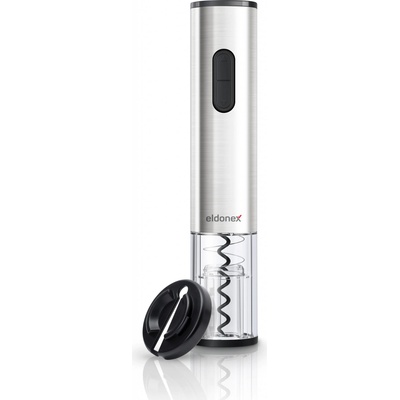 Eldonex WineSpin Premium SILVER – stylový elektrický otvírák na víno z nerezové oceli. Otevře lahev za 7 vteřin, bez námahy a s elegancí. Baterie a řezačka folií součástí balení.