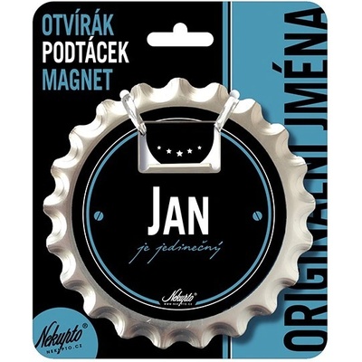 Otvírák na pivo se jménem slouží i jako podtácek a má magnet. Materiál: kov Rozměr: průměr 10 cm