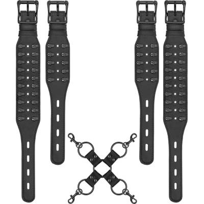 Poutací sada Skull Hogtie, která obsahuje čtyři pásy na ruce a nohy a jeden čtyřnásobný spoj.