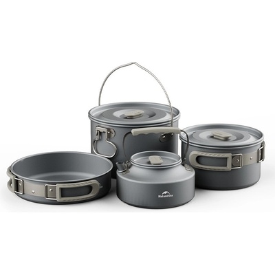 Sada turistického nádobí. Ideální pro kempování a výlety. Hrnec, pánev a konvice. Prostorná konvice s rukojetí a víkem vám umožní vařit vodu na kávu nebo čaj. Sada je vyrobena z...