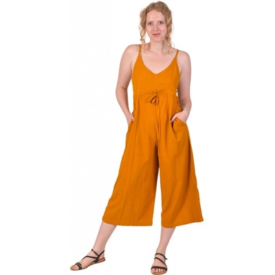 Chcete v létě zazářit? Vyberte si tento tříčtvrteční overal v okrově žluté barvě! Díky volnému střihu vám v něm bude dobře i v těch nejteplejších dnech. Je na ramínka a doplňují...