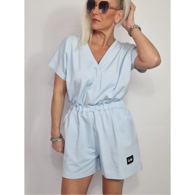 Dokonalý bavlněný overal s gumou v pase, výstřihem do V, zapínáním na patenty a krátkým rukávem. Lehce pružný ONE SIZE, sedí na XS-L( šířka přes prsa 60 cm, šířka v pase...